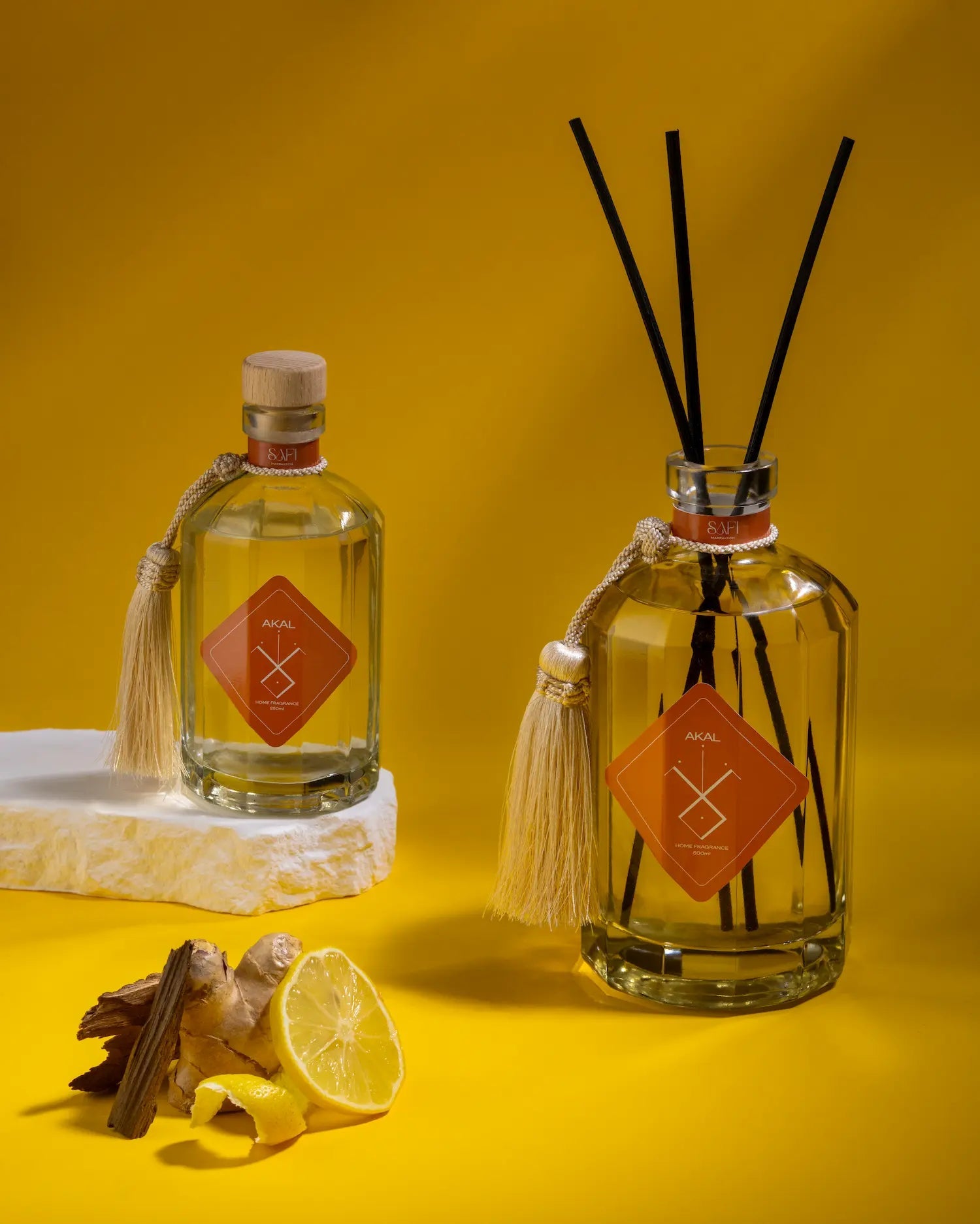 Si apre con la freschezza vibrante degli agrumi e la luminosità speziata dell'elemi, seguita dal calore avvolgente dello zenzero nel cuore. La base, con il legno di cedro e il legno di sandalo, dona profondità e un tocco terroso, perfetto per trasformare ogni spazio in un’oasi di vitalità e armonia.
