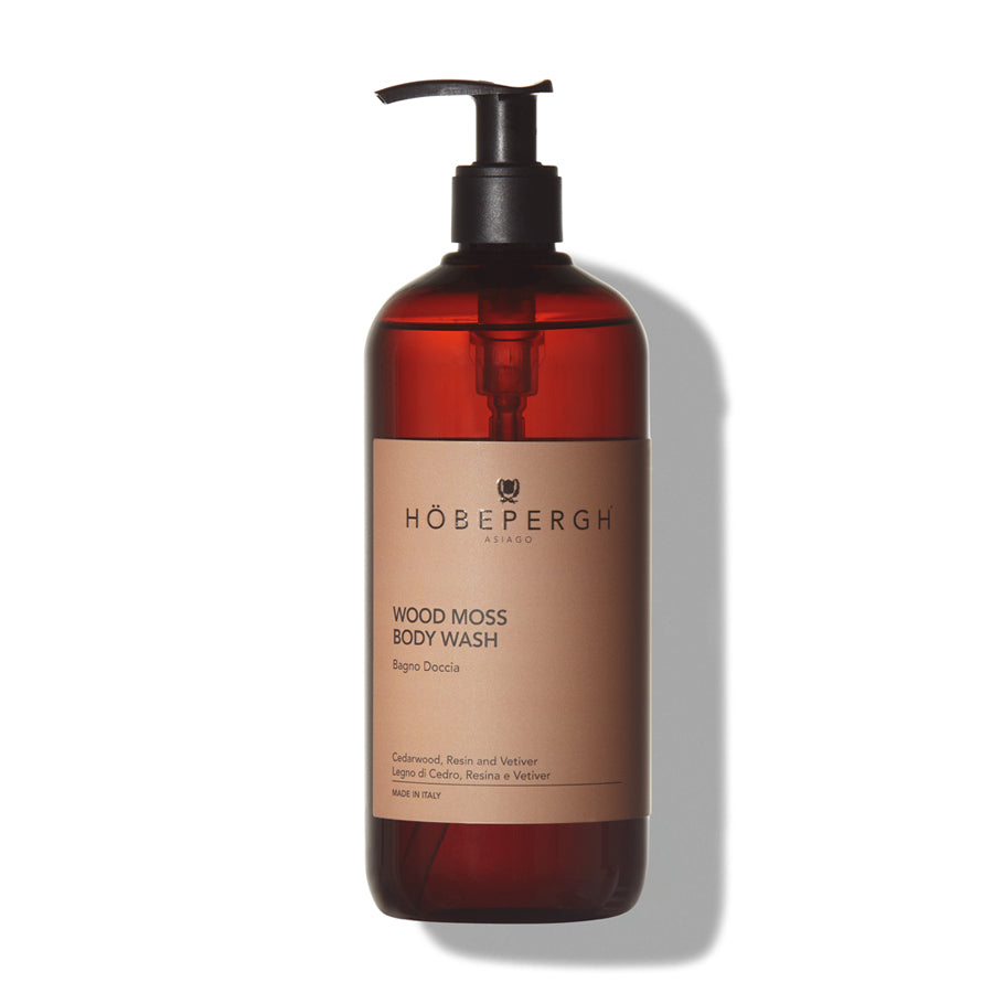Wood Moss Body Wash è un ricco bagno doccia aromatico con un distintivo sentore balsamico delle Dolomiti, note verdi ed acquatiche di bosco al mattino, con un fondo di muschi e cortecce resinose. Legno di Cedro e Vetiver sapientemente mescolati in una miscela purificante di estratti vegetali di Pino Silvestre e Lampone che detergono la pelle e donano un vivace aroma rinfrescante. La formulazione si contraddistingue per la presenza del Wildaros®, un esclusivo principio funzionale brevettato derivato dal lampone selvaggio coltivato in agricoltura biologica da “Rigoni di Asiago” e sviluppato grazie alle biotecnologie, dal potere altamente antiossidante, protettivo e lenitivo sulla pelle. Un detergente che testimonia il profondo impegno di HöbePergh nel promuovere un nuovo modello di economia circolare e sostenibile, che impiega le risorse naturali in modo oculato ed efficiente.