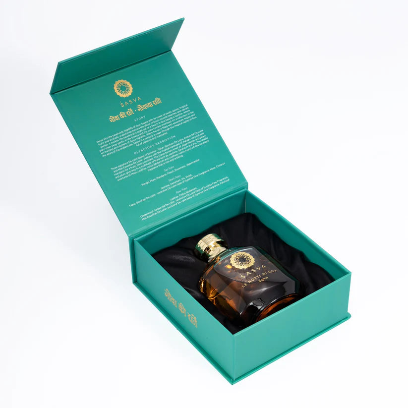 Sapna è un profumo orientale unisex. Immergiti nella vibrante vita notturna di Goa con Le Notti di Goa Sapna Eau de Parfum. Questo profumo, con le sue note di spezie esotiche, frutti tropicali e accenti alcolici, cattura perfettamente il fascino delle spiagge illuminate dalla luna e delle feste vivaci di Goa. Immagina una serata accanto a un falò, con le palme che ondeggiano dolcemente nella brezza marina e le stelle che brillano nel cielo. L’aria è carica di avventure, speranze e il mistero del mare infinito. Le Notti di Goa Sapna ti porta in un viaggio sensoriale attraverso le magiche notti di Goa, evocando piaceri e ricordi indimenticabili.